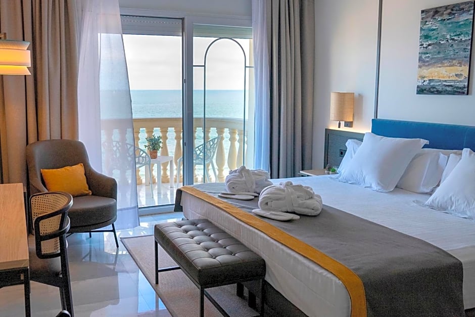 This room features a private balcony with views to the Mediterranean Sea, San Sebastián Beach and San Bartolomé Church.
