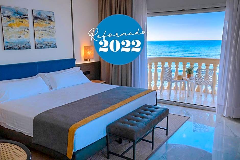 This room features a private balcony with views to the Mediterranean Sea, San Sebastián Beach and San Bartolomé Church.